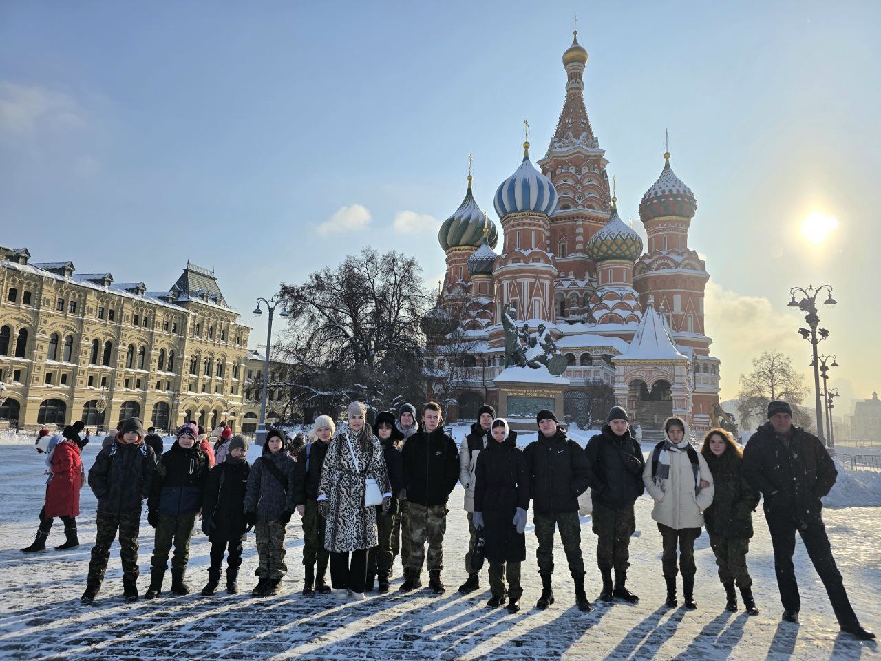 Молодые патриоты также посетили художественно-промышленную выставку «Уникальная Россия» в Гостином дворе, где были представлены экспонаты из 75 регионов страны. И, конечно же, они побывали на Красной площади.