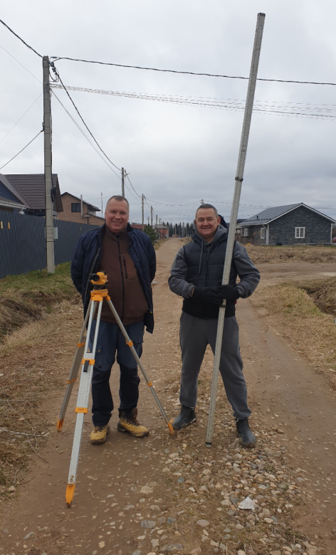 Прибрав территорию деревни, люди принялись решать и другую важную задачу на улицах Кирсанова и Солнечная. Там они выступили в качестве геодезистов: провели измерения высот и определили уровень наклона поверхности, что необходимо для организации правильного водоотведения.